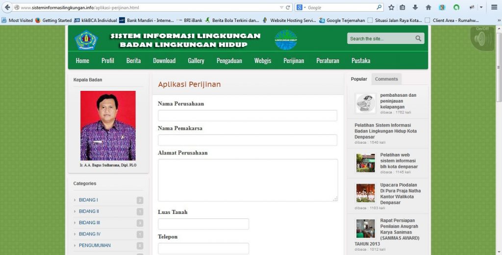 Portofolio : Sistem Informasi Status Lingkungan Hidup Kota Denpasar